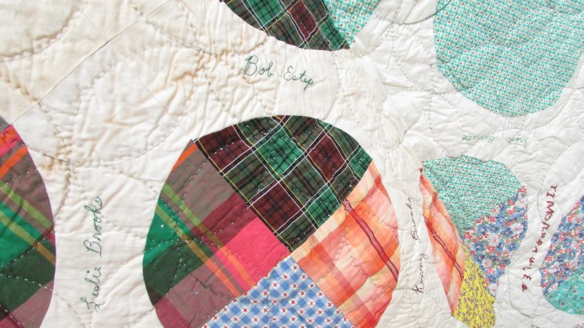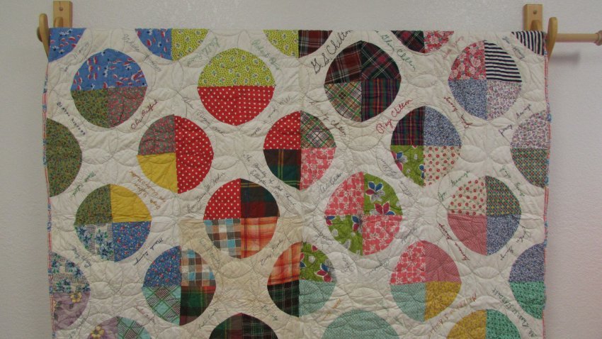 This friendship quilt was made by the Assembly of God Church and presented to the Estep family.
